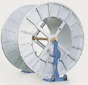 Einfaches Gerät zum Heben und Abspulen von Kabeltrommeln.